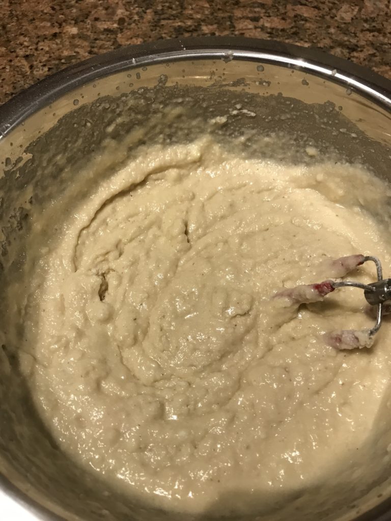 It will be a thin batter. It may be a little thicker or thinner than you see pictured based on the brand of applesauce.